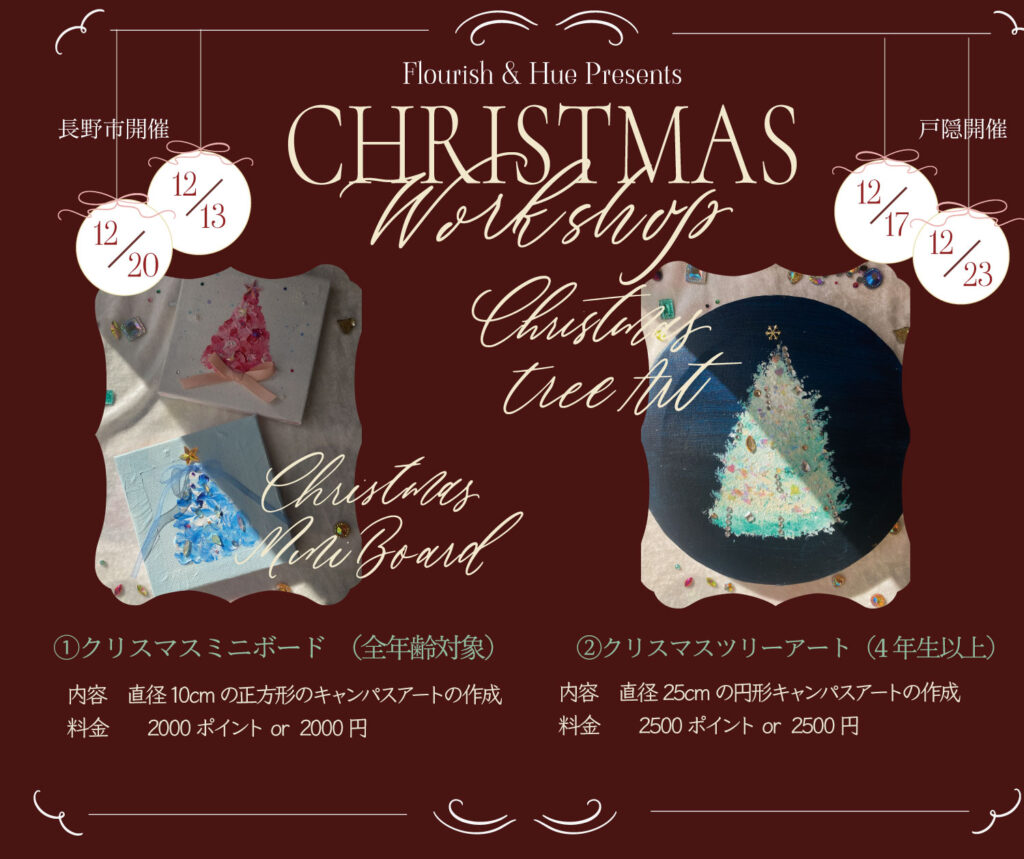 今年最後のワークショップはクリスマスを彩るアートの自分だけのツリーを描きます。